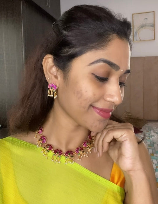 Lotus necklace set (pink)