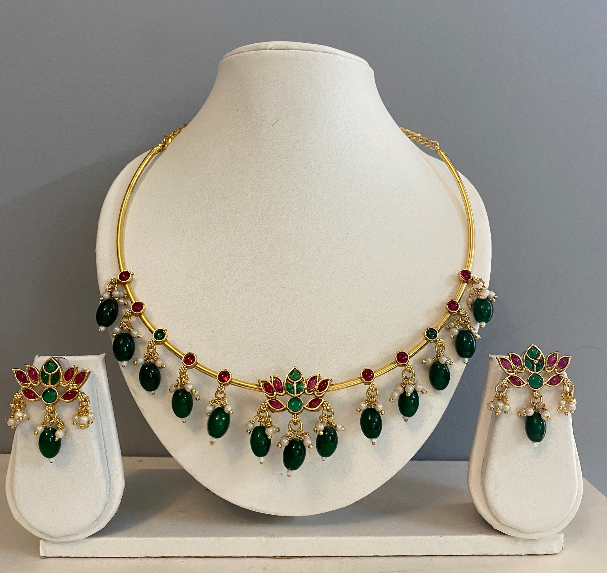 -Green beads lotus set
